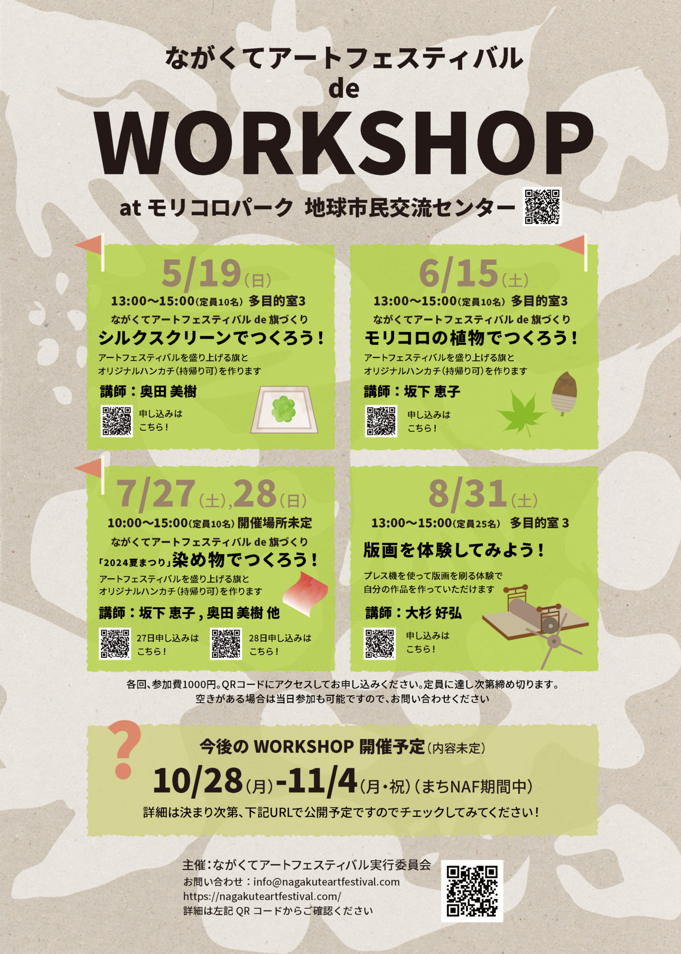 ながくてアートフェスティバルde WORKSHOP Posted in モリコロパーク 地球市民交流センター, 5/19, 6/15, 7/27, 7/28, 8/31 Previous post: ながくてアートフェスティバル de WORKSHOP ながくてアートフェスティバルde旗づくり シルクスクリーンでつくろう!多目的室3 5/19(日)13:00-15:00定員10名 参加費¥1000(このイベント終了致しました。) Next post: ながくてアートフェスティバル de WORKSHOP版画を体験してみよう! 多目的室38/31(土)13:00-15:00定員25名参加費¥1000(このイベントは終了しました。) コメントを残す コメントをキャンセルコメント ※ 名前 ※ メール ※ サイト 次回のコメントで使用するためブラウザーに自分の名前、メールアドレス、サイトを保存する。