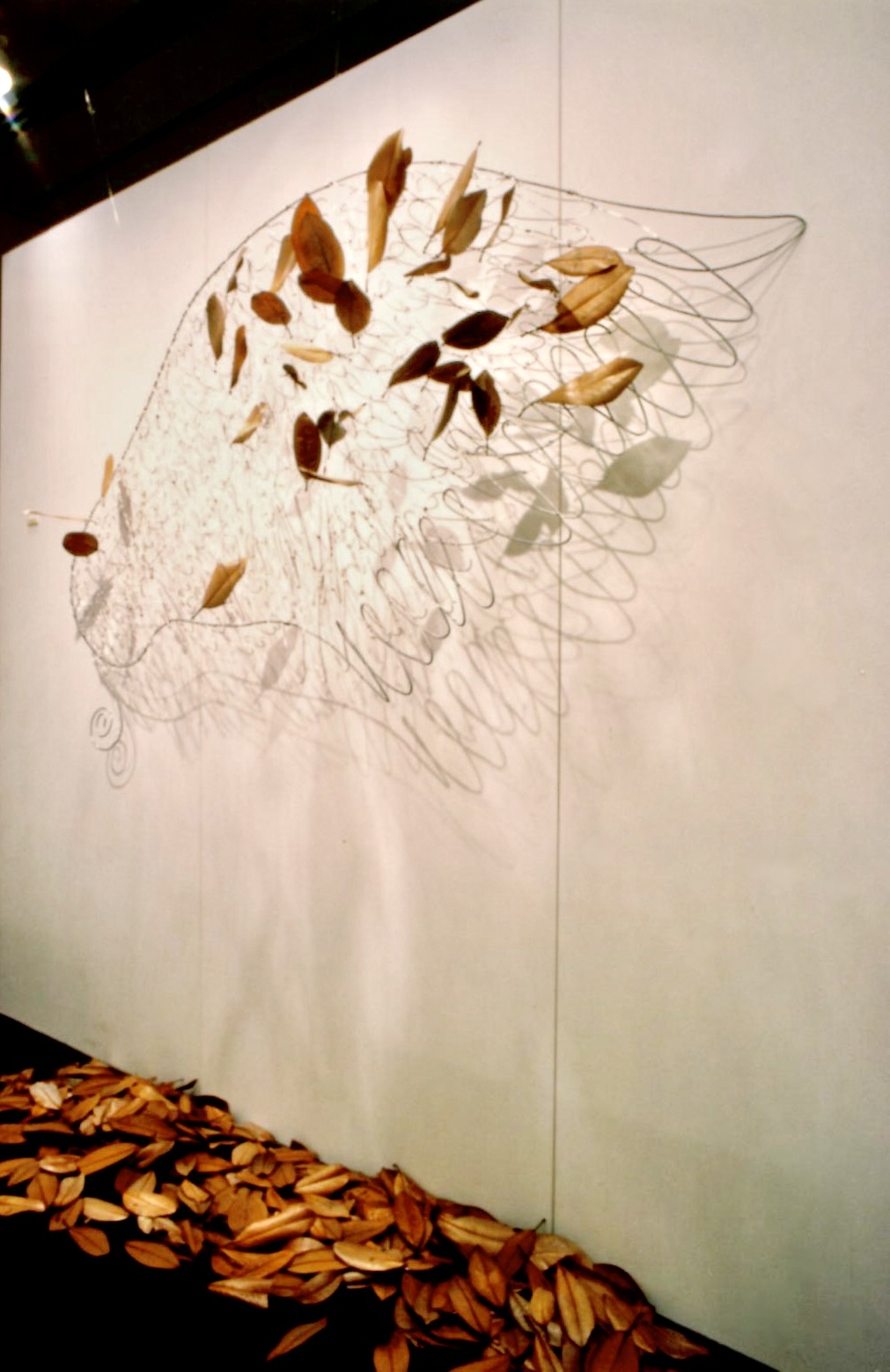 そのままにしておけば朽ちてしまう落ち葉でさえも、WIRE WINGに差せば、翼の羽の1枚1枚に変わります。