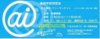 愛芸祭同窓会ブース県芸内、新講義棟11/2(土)-11/4(月・祝)11:00~17:00最終日16:00まで愛芸祭同窓会ブースで気軽な交流を楽しんで下さい。小作品、グッズ、雑貨、食器、画材等、フリーマーケットもやってます! Posted in 愛知県立芸術大学, 未分類